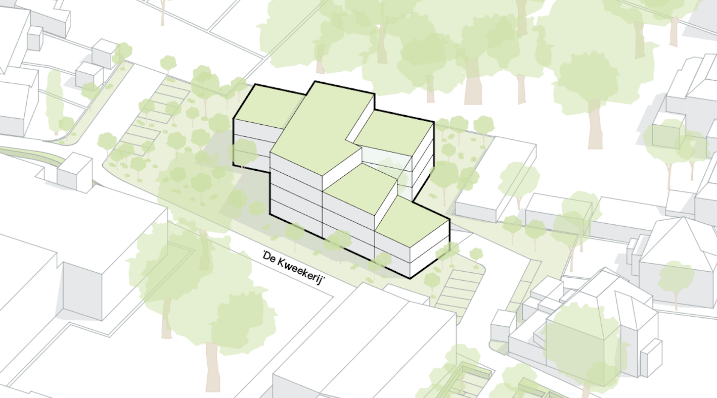 Aan de Hoofdstraat in Velp werken wij aan De Kweekerij, een eigentijds woongebouw op de historische locatie van de Nederlandse Palmenkwekerij. Met deze zorgvuldige inbreiding worden achttien appartementen toegevoegd aan het dorp Velp. Het volume is afgestemd op de schaal van de omgeving en sluit aan op het bestaande stedelijk weefsel. De architectuur verwijst naar de ritmiek van de voormalige kasbebouwing en legt de nadruk op de horizontaliteit die dit deel van de Hoofdstraat kenmerkt. Transparante gevels, lichte materialen en een groene inpassing geven het gebouw een open en herkenbare uitstraling. De woningen variëren in omvang, van compacte appartementen tot een royale bovenwoning, en voorzien zo in de behoefte van verschillende doelgroepen. Parkeren is grotendeels opgelost in een halfverdiepte laag zodat de buitenruimte beschikbaar blijft voor groen en verblijf. Alle woningen zijn aardgasvrij en voldoen aan hoge energie-eisen, waarmee De Kweekerij een toekomstbestendige bijdrage levert aan de woonkwaliteit van Velp